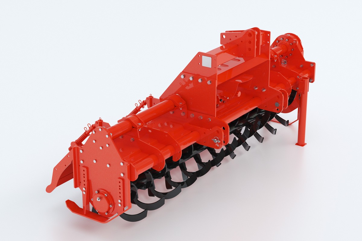 1GQ旋耕機(jī)配套動(dòng)力50-120馬力,特殊設(shè)計(jì)的旋耕刀具有穩(wěn)心大、碎土碎茬埋茬性能好,作業(yè)阻力小、耐磨,旋耕刀按螺旋線對(duì)稱排列,作業(yè)中保持整機(jī)穩(wěn)定平衡。在不同工作條件下選配不同刀軸可得到良好的作業(yè)時(shí)效,刀軸刀盤采用圓盤式設(shè)計(jì),具有良好的抗纏草能力;側(cè)傳動(dòng)箱采用整體箱體設(shè)計(jì),保證側(cè)箱齒輪傳動(dòng)更加可靠;